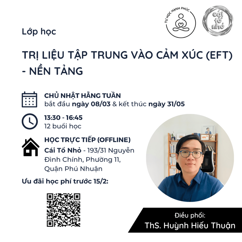 Tìm hiểu và trải nghiệm EFT được áp dụng như thế nào trong trị liệu dành cho cá nhân (Emotionally Focused Individuals Therapy – EFIT), trong trị liệu dành cho cặp đôi (Emotionally Focused Couples Therapy – EFCT), và trong trị liệu dành cho gia đình (Emotionally Focused Families Therapy – EFFT)